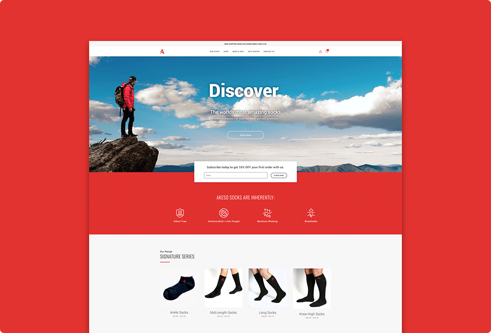 The Akeso Socks website needed to match the innovation of their product. Our team developed a user-centric eCommerce experience on WordPress with WooCommerce, ensuring a seamless shopping journey from discovery to checkout. The site showcases the socks’ unique features while simplifying the path to purchase.