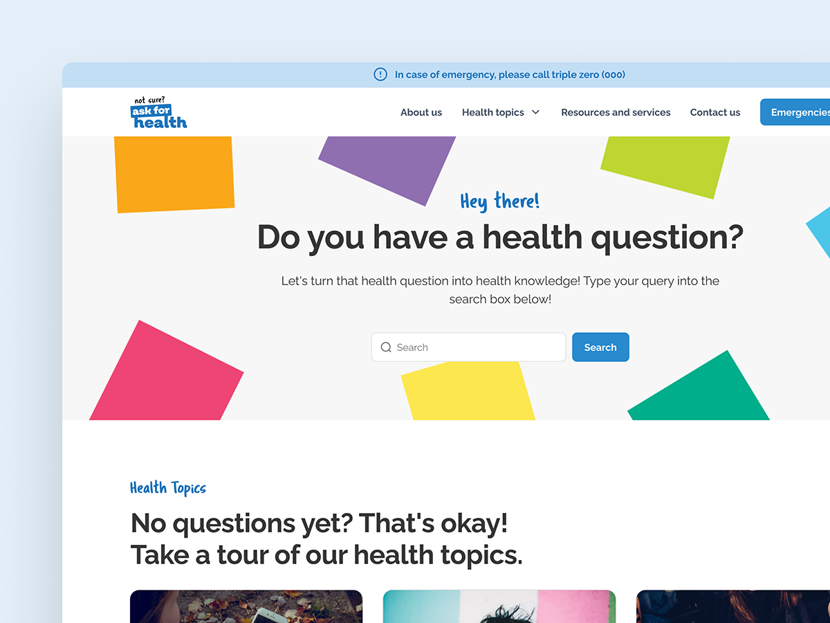 Ask For Health is an initiative that helps young people understand health topics and navigate the health system. Checkpoint Creative delivered a user centred and accessibility focused website that makes information easy to explore, supported by ongoing hosting, maintenance, and long term technical care.